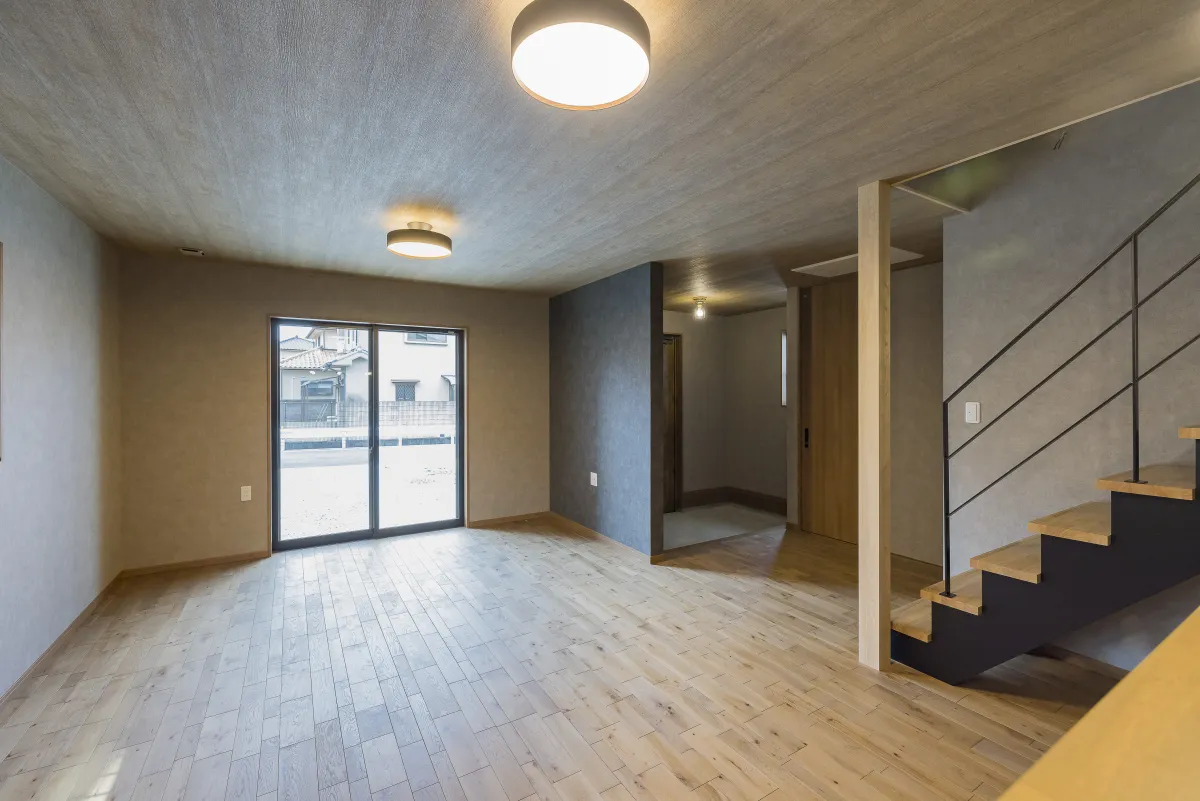 1階は玄関土間から一続きのLDK。